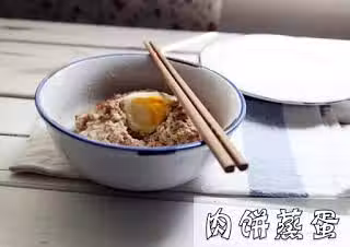 2. 把調好味的豬肉碎放在碗裏,中間稍微挖一個坑,打一個雞蛋進去 ,再撒一點蝦米 ,上鍋蒸 。