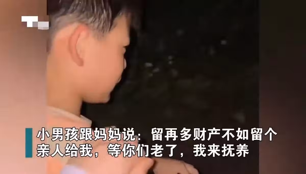 小男孩表示,給他留下再多的財產,都不如留下一個親人,等以後媽媽老了,弟弟或者妹妹可以由他來撫養。