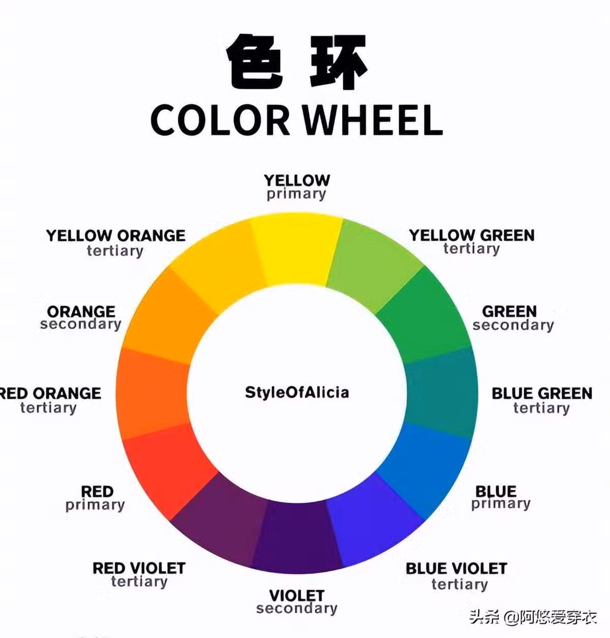 搭配色彩的前提是我們需要了解一下什麼色彩才是適合自己的,在這張色相環中,你可以明確地感受到冷色調和暖色調,它們兩種色彩的對比度是很明顯的,冷色調的衣服穿在身上自帶清冷感,而暖色調的服裝往往更具有活力,給人的感覺也更年輕靚麗。