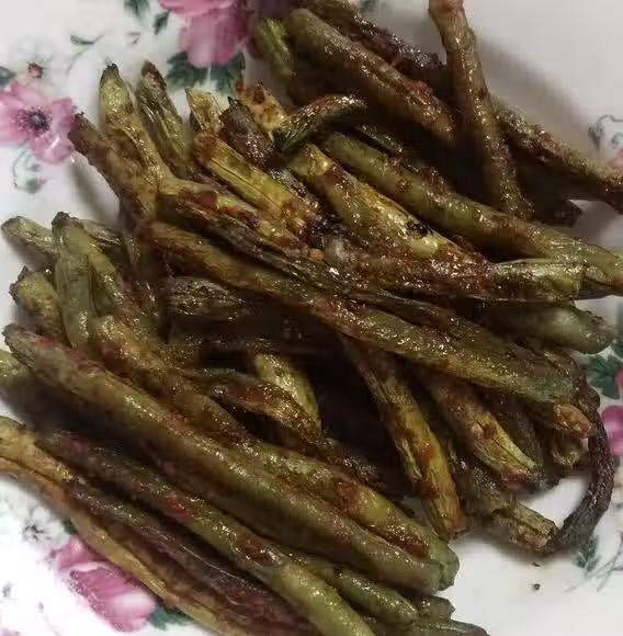 用料:四季豆一斤、蒜蓉辣醬適量、燒烤調料適量、橄欖油適量