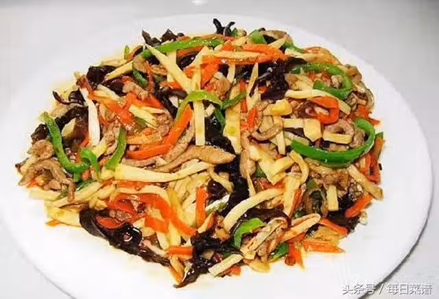 1、食材洗凈。杏鮑菇4個用手撕成絲,胡蘿蔔切絲,木耳切絲,蒜姜切末。