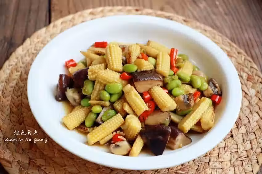3. 待香菇出水後,淋少許開水,並不停翻炒至成熟,加食鹽調味裝盤。