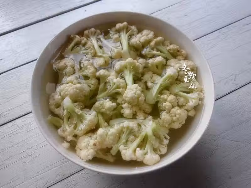 將花菜用手掰成小朵,放在淡鹽水中浸泡10分鐘