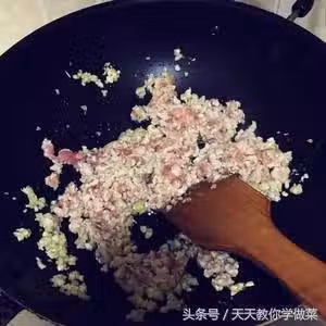待肉糜變色,依次加入1勺辣椒、2勺豆瓣醬、3勺甜麵醬,調入一點水,中小火燜煮三分鐘,出鍋前加一點白砂糖調味,就OK啦!滿屋,不,滿樓道飄香啊!