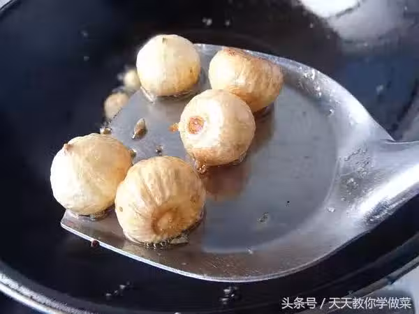 炸排骨的鍋不用洗,盛出多餘的油,只留底油,丟入兩大塊冰糖作為炒糖色之用。多說一句 這一步可以預估冰糖的量,以便在加入醋的時候心裡有個數。糖的量盡量多一些。在調糖醋汁的時候就不用加入額外的糖量了