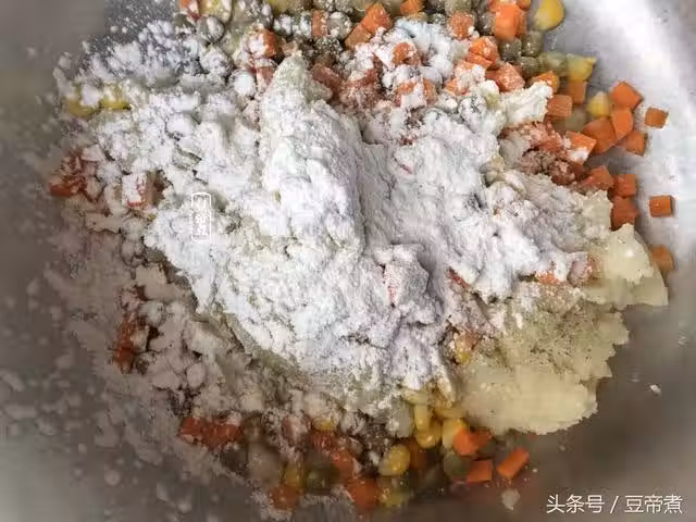 6、再加入調味並倒入玉米澱粉用手攪拌抓捏均勻