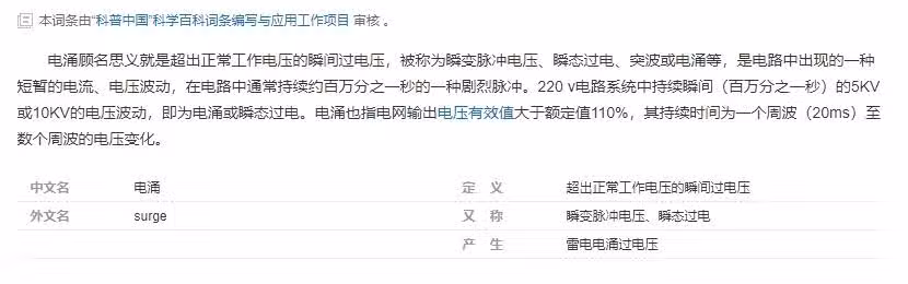 首先,我們要先弄清楚什麼叫做「電涌」。所謂的電涌其實就是指使用電路時出現的一種短暫的電流波動,超出了正常工作電壓的瞬間過電壓,又被稱作瞬變脈衝電壓。