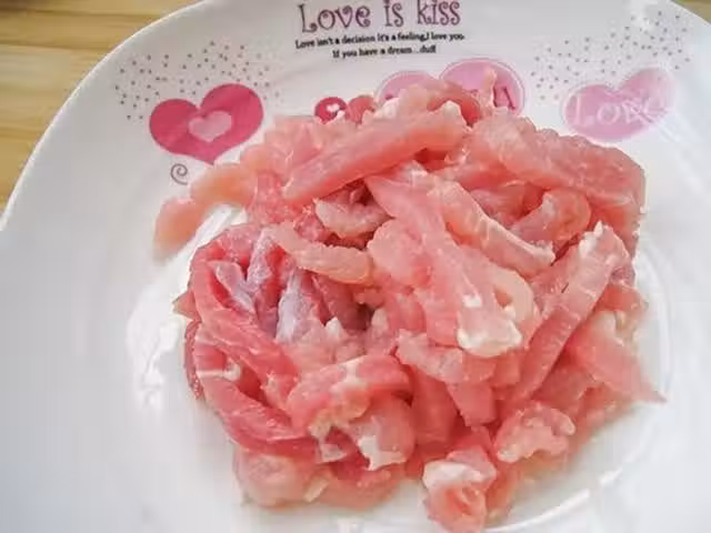 第三步,往豬肉里加蛋清,生粉,這樣能增加肉的味道,但是也分做法,如果你要炒肉那就不用這步,但是你要是做鐵板燒之類的,那必須要加這步。