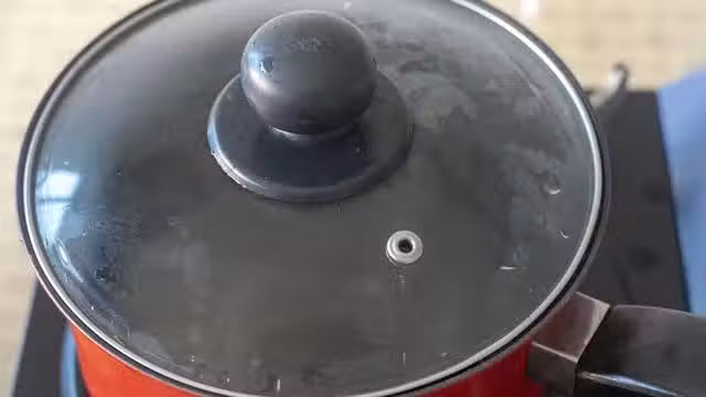 2、準備一個勺子,刷一層食用油,打入雞蛋,鍋中水燒後開始煮蛋,把勺子放進來,放在燒開的水上,不要讓勺子進水;