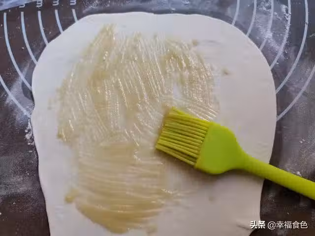 5、刷好油酥的面片捲起來,邊卷邊往外拉伸。擀的時候厚薄要均勻,避免後面漏酥。