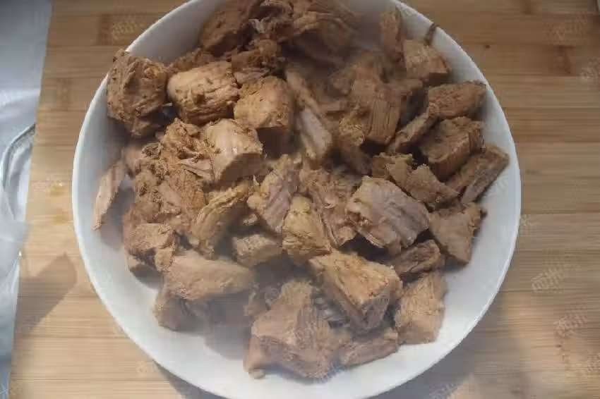 再手工把較粗的肉條撕開。(所以之前切塊時要豎的紋路留長點,就是為了這一步方便)