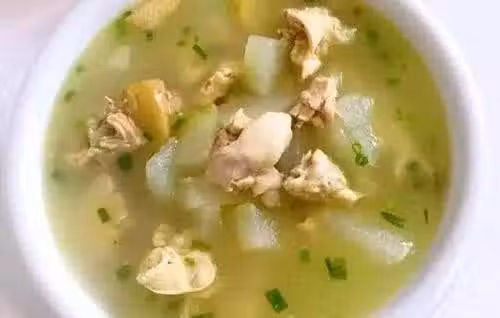 雞胸肉200克、黨參3克、黃耆3克、帶皮冬瓜200克、黃酒2匙、鹽適量。