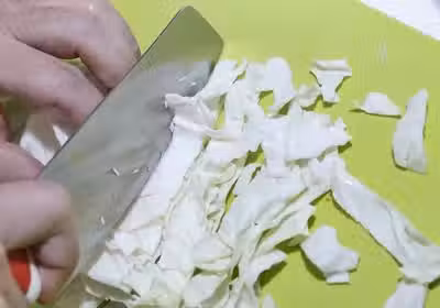 高麗菜炒過會變軟,可切成寬約1公分長條狀,切得太細吃起來會沒有口感。