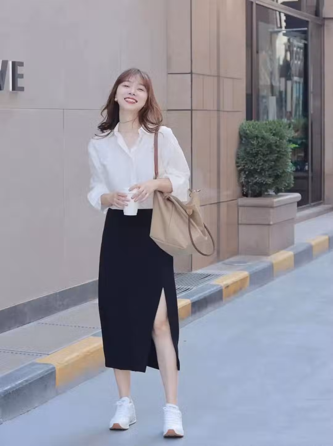 小白鞋+搭配白色上衣+藍色半裙,仿佛穿越到了天空般清爽乾淨的世界。 整體氛圍感十足,讓你在人群中脫穎而出。不妨嘗試一下這樣的穿搭,讓自己更加自信和美麗。 👇