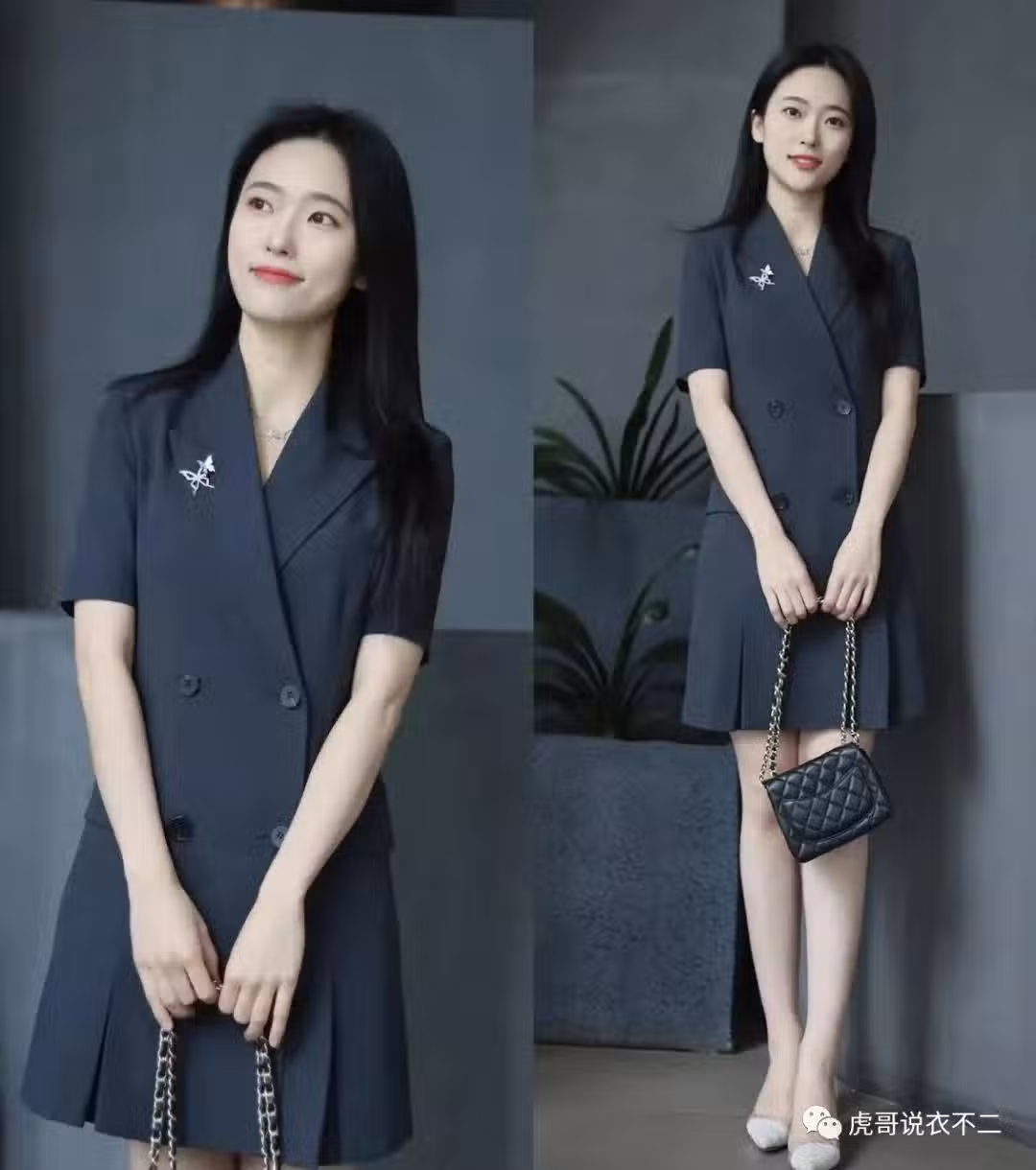 職場女性的穿搭總是少不了一份利落氣質,而圖中這件西裝裙就蘊含著兩種不同的風格,但卻和諧交融出了比較統一的效果,看起來美得優雅又不失氣場,知性又大方。