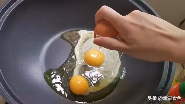 6、看著雞蛋底部的的蛋白液稍微凝固時,用筷子將蛋黃戳破,稍微劃散。