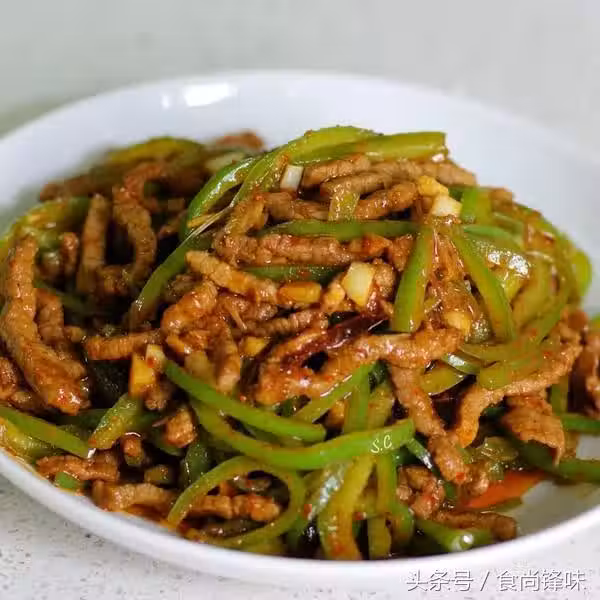 1、牛肉切絲,水澱粉花椒粉生抽料酒入底味抓勻。