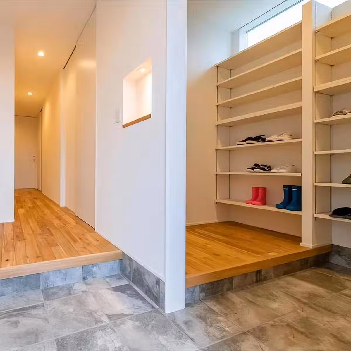 入戶儲物間的這個設計,不僅解決了日常收納鞋子的需求,同時也可以用來放置一些家居服,主人回家之後可以將外套放在這里,然後換上舒適的家居服,再進入到室內,也是一個很不錯的設計。