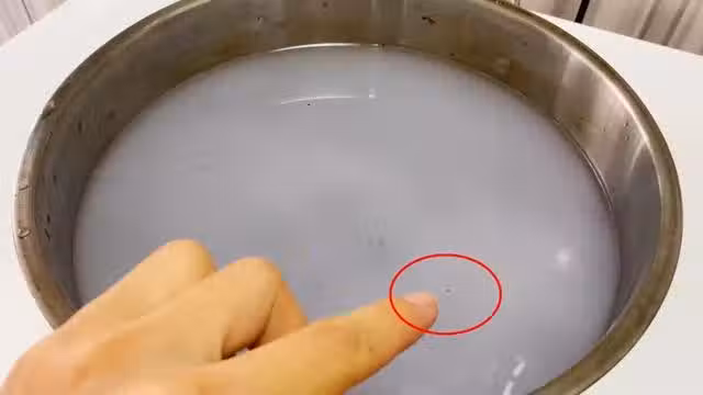 攪拌均勻之後,我們可以讓楊梅在水中靜置十分鐘。時間一到,我們會發現水面上漂浮著非常多的髒東西,這就是藏在楊梅中的灰塵以及蟲卵。