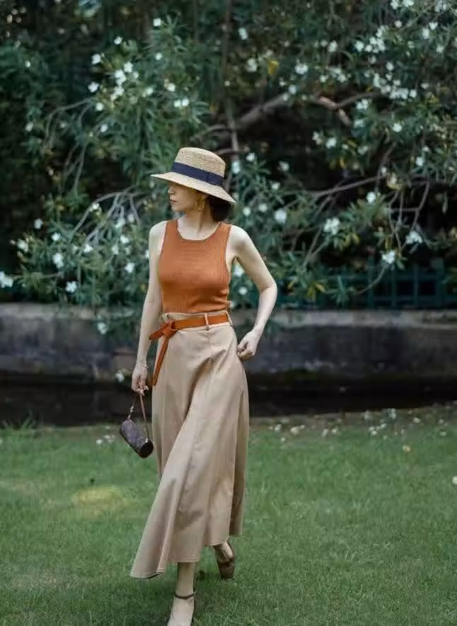 同色系搭配要穿出來層次感,深淺結合就是最為直觀的方向,淺卡其和棕色系的搭配最襯顯時尚感、溫柔感和穩定性,對於中年女性而言,這樣的搭配絕對有襯托氣質的優勢。