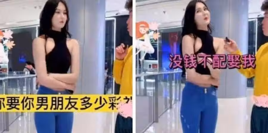 在中國就有網友隨機採訪路人,一位女子對自己身材外貌超有自信,認為男生若要結婚起碼要給她4.6億當聘禮,更嗆「沒錢不配娶我!」