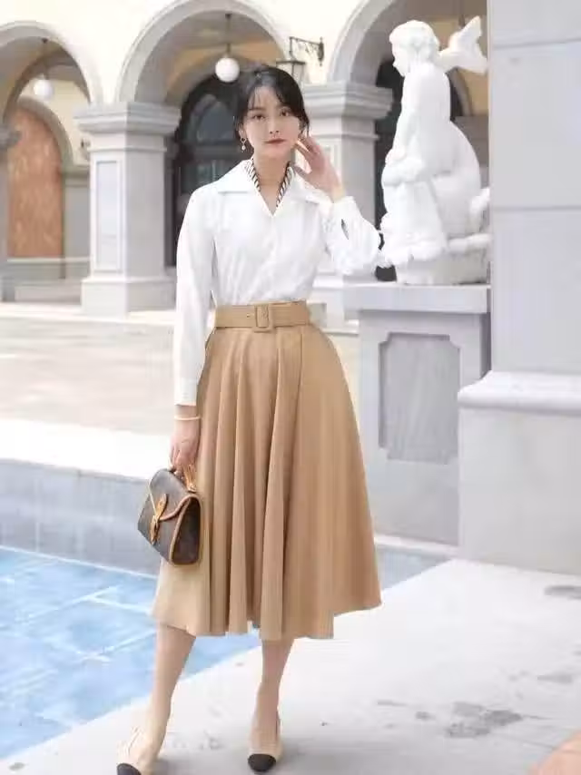 會穿裙子的女人很優雅,春夏多穿減齡「半褶裙」,比百褶裙更好搭