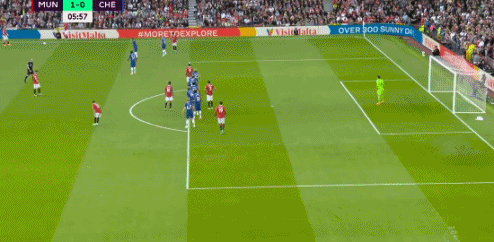 第6分鐘,曼聯獲得前場左邊路的任意球,埃里克森將球吊入禁區,中路的卡塞米羅力壓福法納頭球破門,VAR確認不越位進球有效,曼聯1-0領先切爾西。