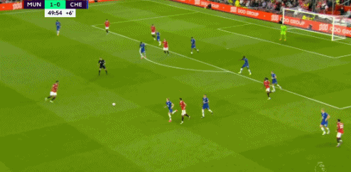 第45+5分鐘,卡塞米羅在前場送出挑傳,禁區右側的桑喬接球後吸引出門將再橫傳後點,馬夏爾拍馬趕到推射空門得手,曼聯2-0領先切爾西。上半場結束,曼聯兩球在手。