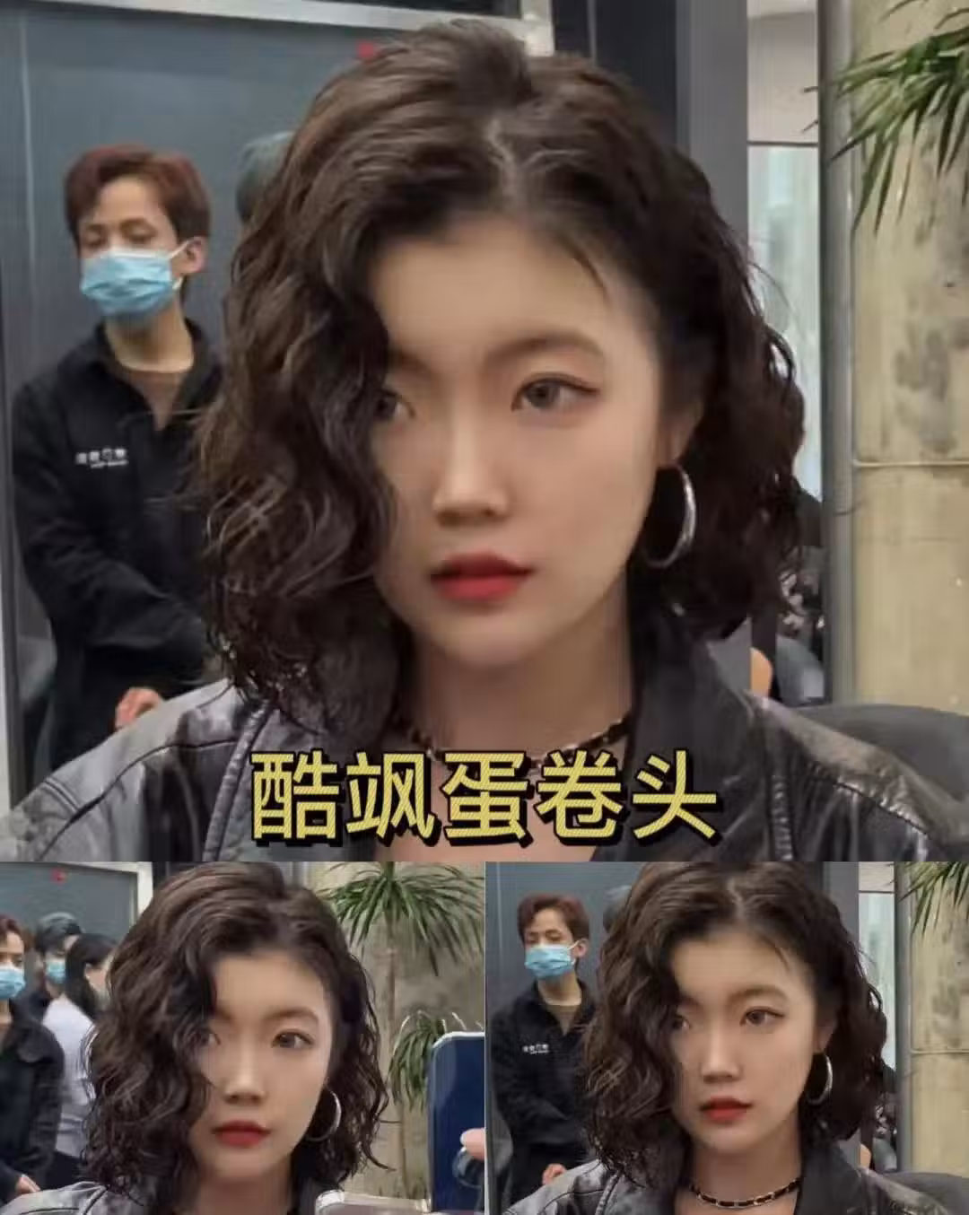 根據您的風格嘗試劉海。如果卷髮造型酷帥,建議嘗試三七分或側分,讓額頭肌膚更加清爽;如果是可愛的蛋卷,可以試試。更適合與爆氧碰撞,營造更甜美的感覺。