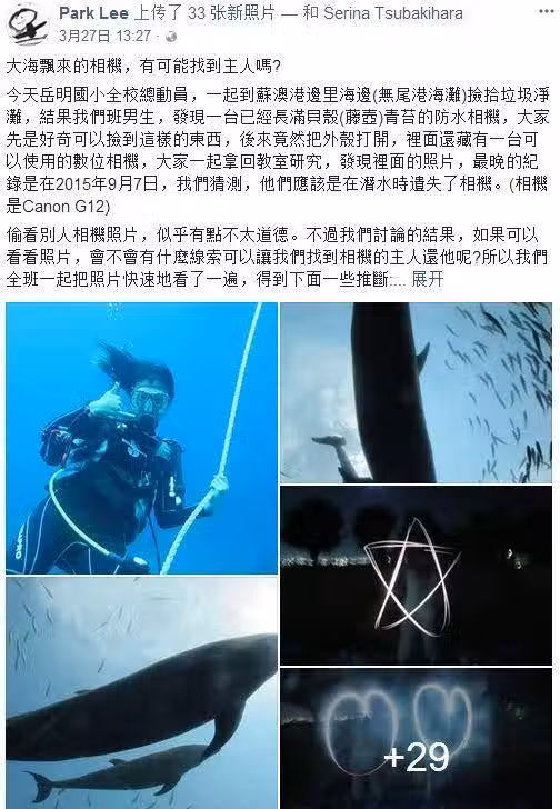 這條信息在 Facebook 上獲1.2萬轉載、2.6萬點贊。該相機製造商也加入到「搜尋隊伍」中去。2天後,失主找到了。她就是東京上智大學外國語專業英語系大三學生椿原世梨奈。