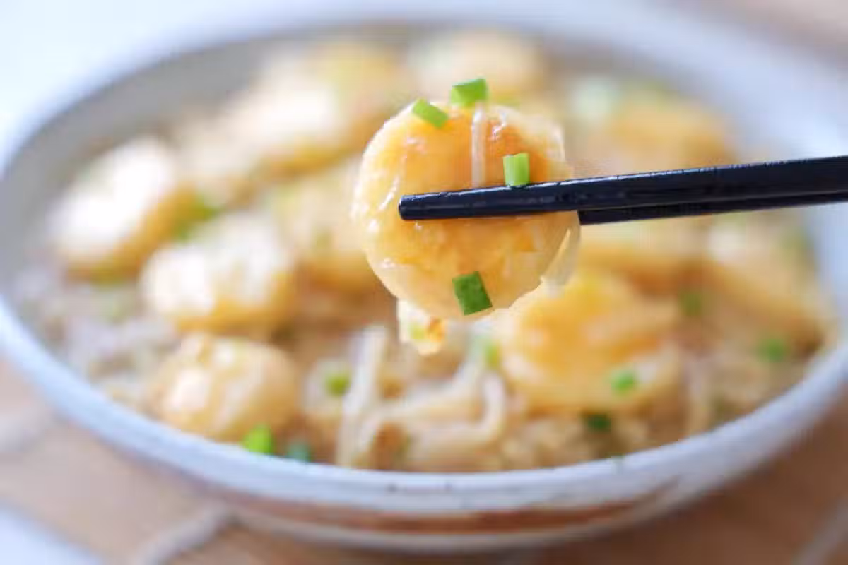 製作配料:金針菇1把 雞蛋豆腐4-5個 生抽1勺 鹽1勺 大蒜2個 小蔥2顆 水澱粉少半碗