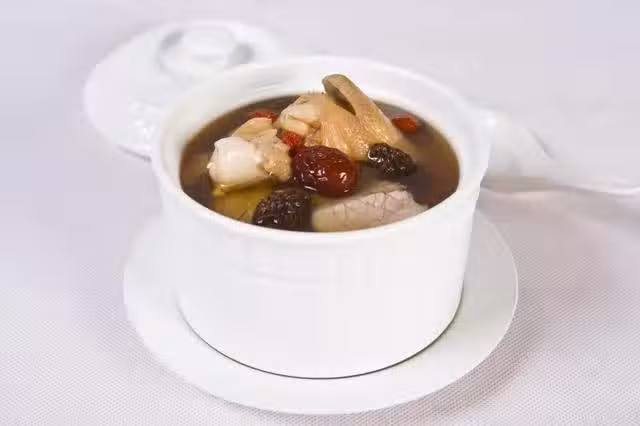 花膠100克、排骨400克、黨參50克、杞子2湯匙、淮山5片、姜5片、紅棗5枚,食鹽適量。