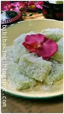 4)自蒸籠取出,待完全泠卻,脫模,用橡膠刀切片,沾上已經蒸好的椰絲,即可.