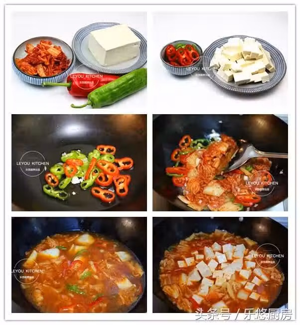 第六步:往鍋中放入1勺韓式辣醬攪拌勻均,然後將豆腐放入鍋中,大火再次燒開後轉小火燉3-5分鐘,出鍋前再撒少許鹽調味即可。(最好嘗一下再放入鹽哦~)