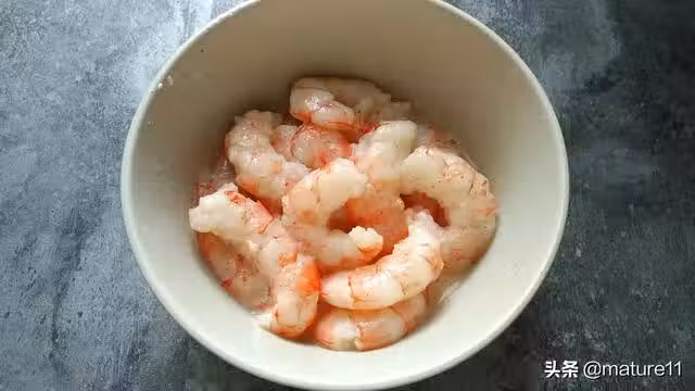5.油鍋燒熱,放食用油,下蝦仁翻炒,撈出備用