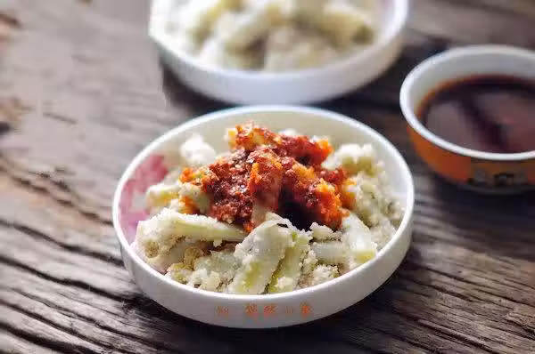 5. 蒸好後取出放涼,按自己的口味放上薑末,辣椒油,鹽,醋等調味品調味即可。
