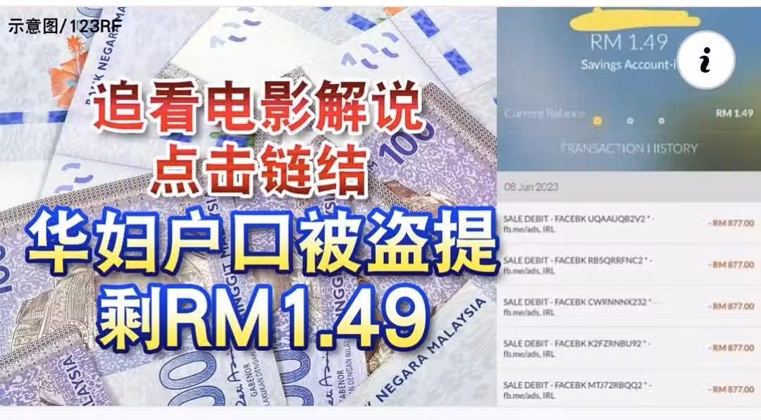 追看電影解說 點擊鏈結 華婦戶口被盜提剩RM1.49