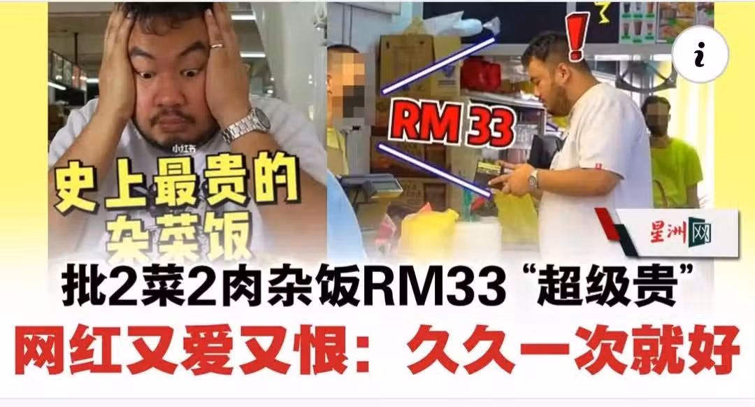 批2菜2肉雜飯33令吉「超級貴」 網紅又愛又恨:久久一次就好