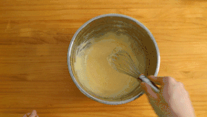 將紅糖水加入麵糊中,充分攪拌均勻。