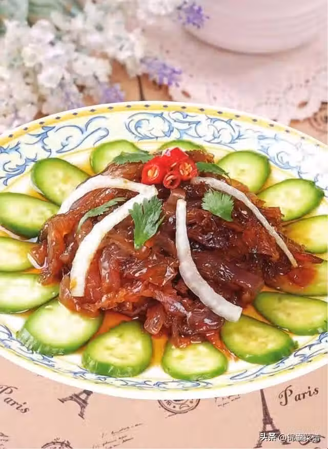 ❶魚皮洗凈,切絲,入沸水汆熟後撈出;紅辣椒洗凈,切絲,汆水後取出;香菜洗凈。