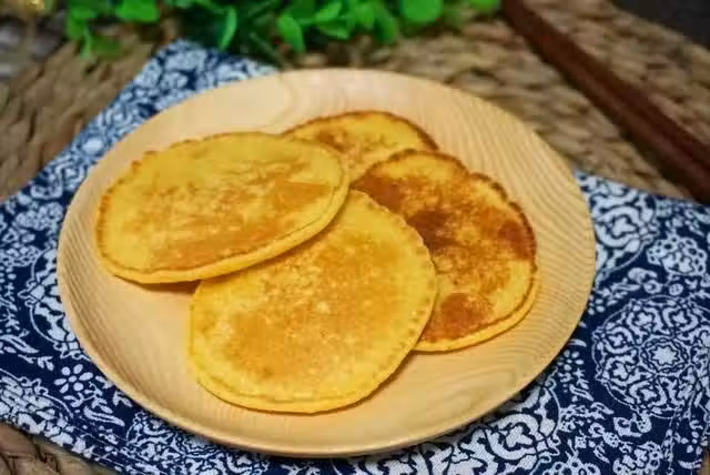 玉米粉50克,普通麵粉26克,牛奶適量(約60克),白糖15克,雞蛋液30克,食用油少許