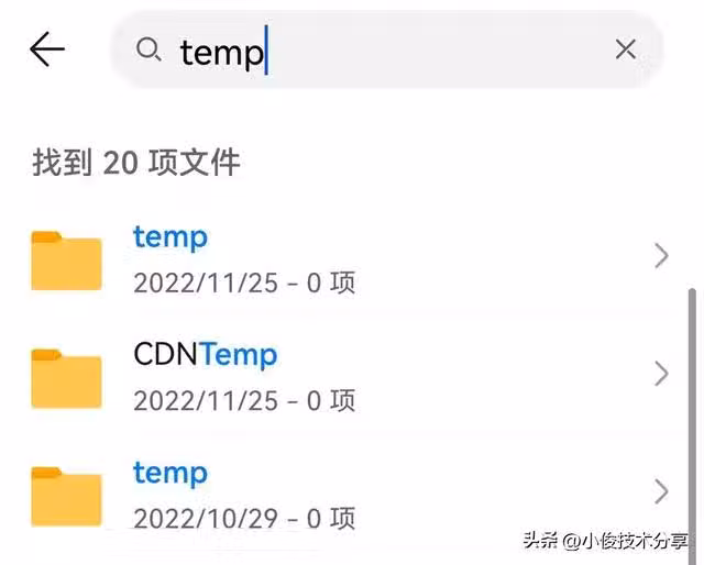 那通過定期清理上述5個文件夾之後,就可以解決手機內存不足,造成的手機卡頓問題了,但是大家在清理的時候一定要注意,一定要把一些重要的數據保存起來,比如一些照片,視頻,文件等等,保存起來之後再選擇清理,不然一旦清理了,這些數據是找不回來的,大家一定要切記!(這裡說明一點以上這5個文件夾,都是打開文件管理,然後直接在搜索欄中輸入英文名稱搜索即可)