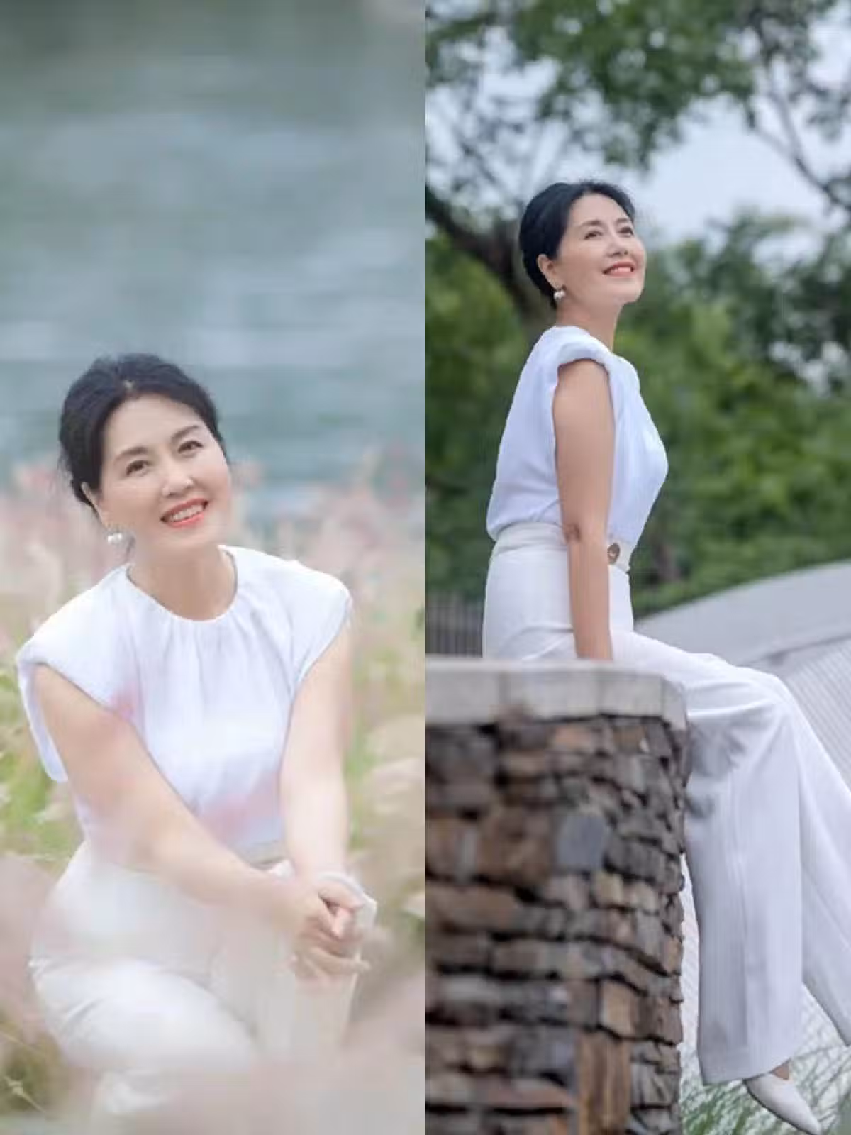 媽媽輩如果用褲子凹造型,那麼推薦版型寬松的高腰闊腿褲、高腰牛仔褲,闊腿褲要選淺色,牛仔褲要選藍色。