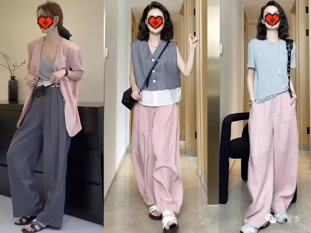 它既可以日常又可以正式,可以高級也可以可愛活潑。無論是黑色褲子搭配粉色上衣,還是粉色褲子搭配灰色上衣,都給人一種迷離又高級的感覺。 配色2:黑+粉