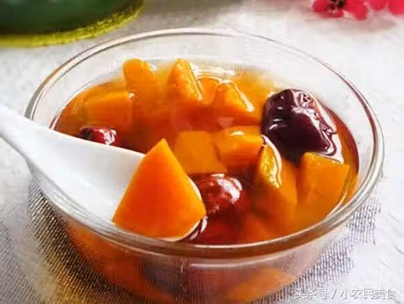 3、放入切好的南瓜,燉煮至南瓜綿軟,根據自己口味加入紅糖即可。