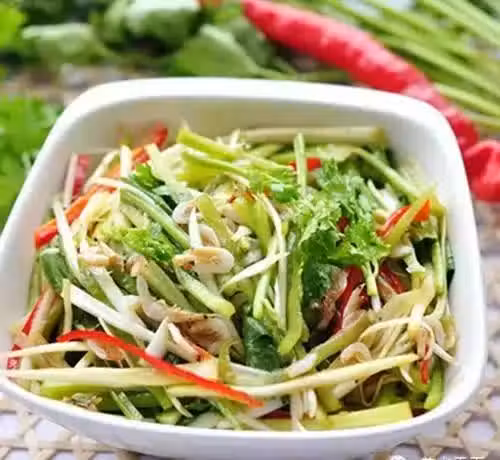 1、蝦皮用水清洗一下,控干水分,蔥、尖椒、切細絲,香菜切段2、將所有食材放入一個容器中