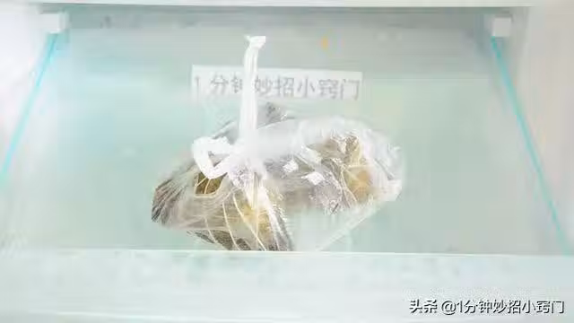 接著把粽子放到塑膠袋裡面打結封口,再放入冰箱的冷凍庫裡面,這樣就能夠起來延長保鮮期的作用。