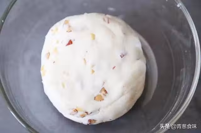 第四步,麵糰揉好後,取一個模具,用刷子刷上一層油,這樣在脫模的時候比較容易,然後將麵糰放入模具中,用手按壓下,使麵糰均勻的鋪在模具中。