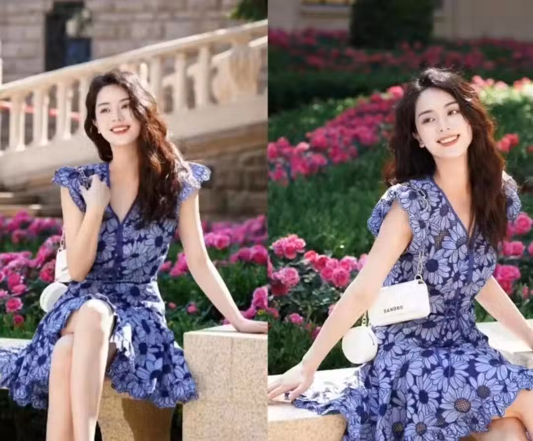 這條藍色的印花裙子把小腿和手臂的曲線都展現出來了,對於身材比較苗條的女性來說試穿還是比較實惠的。