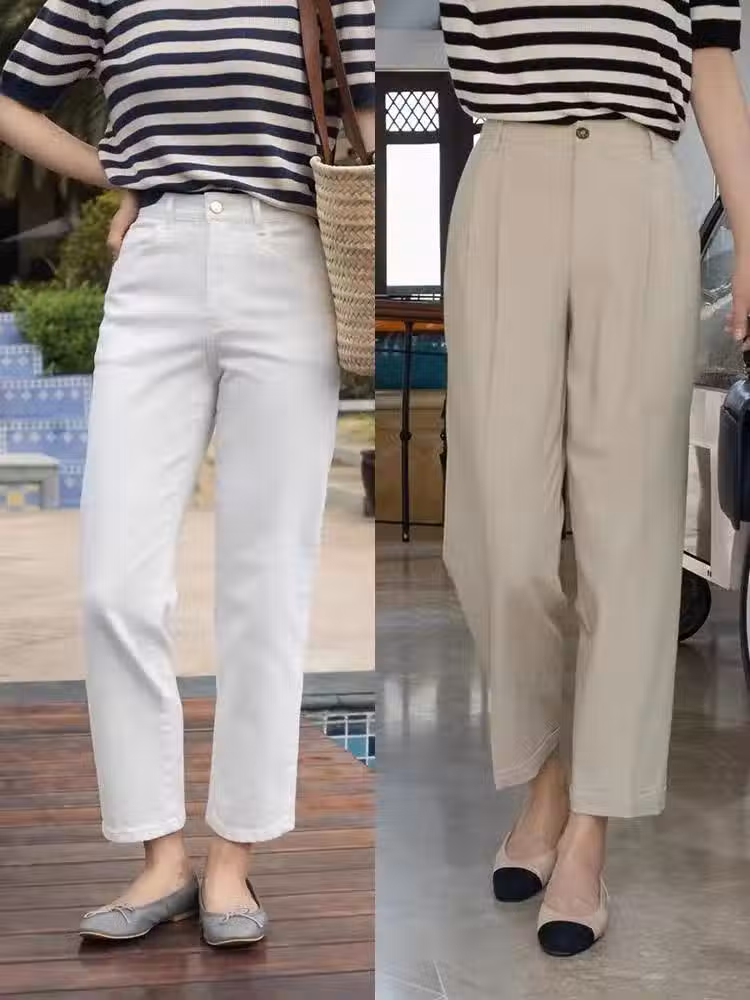 夏天穿直筒褲,建議大家選擇九分長度的,小露腳踝可以增加造型的唯美感,也能更好地展現出女性魅力。如果不知道選什麼樣式的直筒褲,姐妹們可以考慮休閒或西褲兩種款式,都能輕鬆讓你擁有一種筆直長腿。